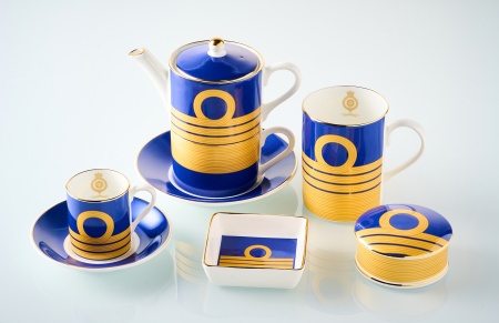 The collection was manufactured in Stoke-on-Trent, a city synonymous with fine china production for over 250 years. Renowned as the "World Capital of Ceramics," the region boasts a history of skilled craftsmanship and innovation in pottery. Adding to the collection’s splendor, intricate decals were created using gold and blue ceramic metallic pigments. Each decal was meticulously affixed by hand and fired at high temperatures to bond permanently to the surface, ensuring durability and richness of color.