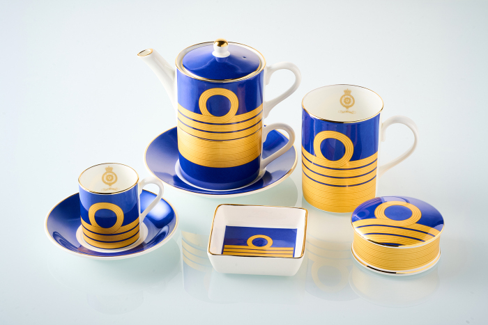 Our task was to develop a ceramic decal that prominently featured the Admiralty insignia, a symbol of maritime tradition and authority. To achieve this, we meticulously combined two ceramic metallic pigments with a rich, deep royal blue colour. This thoughtful blend of materials and hues resulted in a collection of stunning pieces that exude sophistication and timeless appeal.